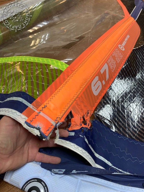 В ремонте парус Naish и стандартная проблема - порвано окно.
